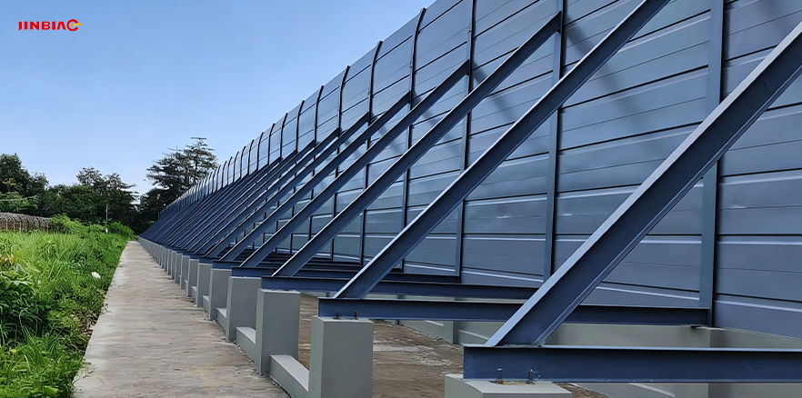 This factory noise barrier project in Indonesia was designed to reduce industrial noise pollution and improve the surrounding environment. The barrier is installed along the factory perimeter wall, providing both noise reduction and security enhancement.